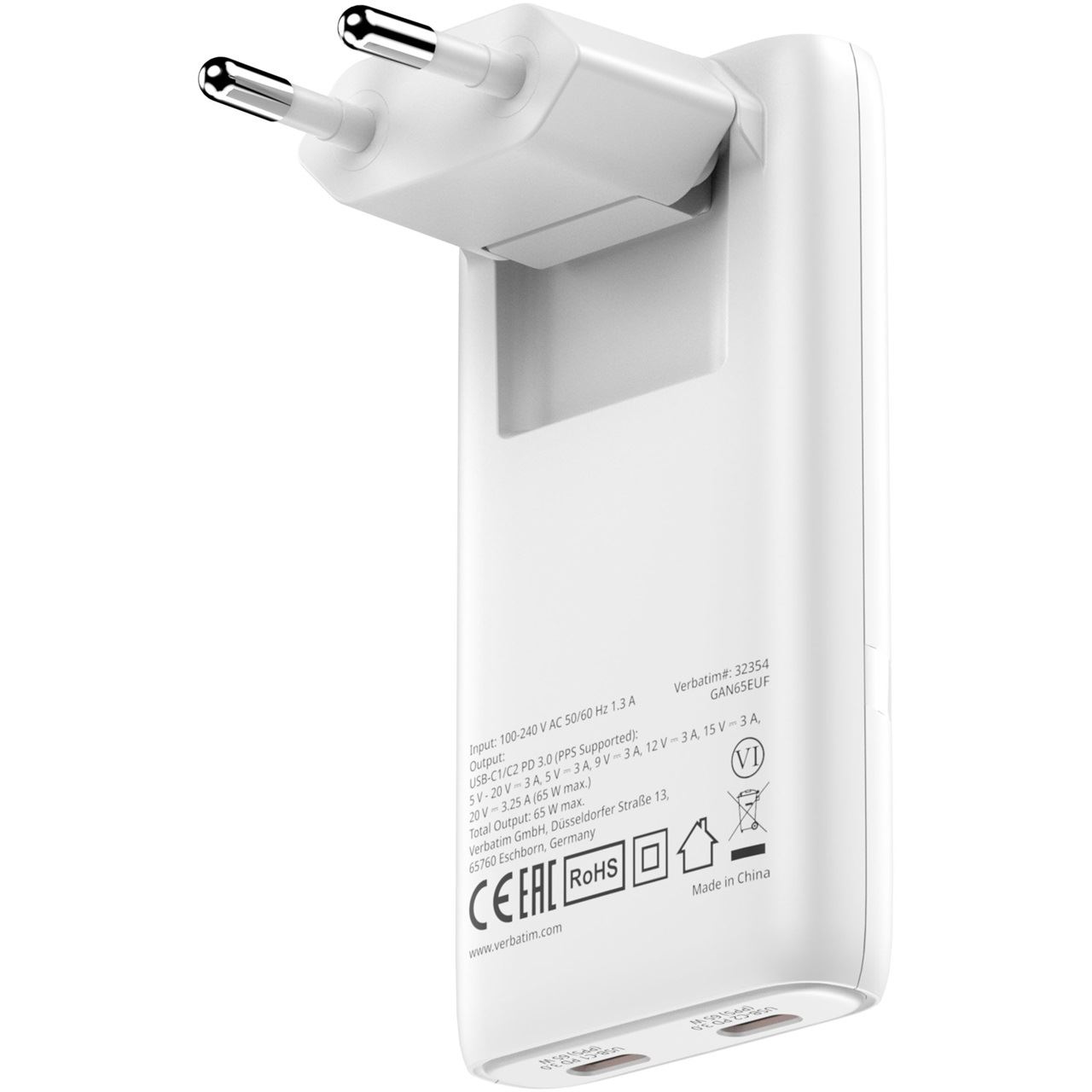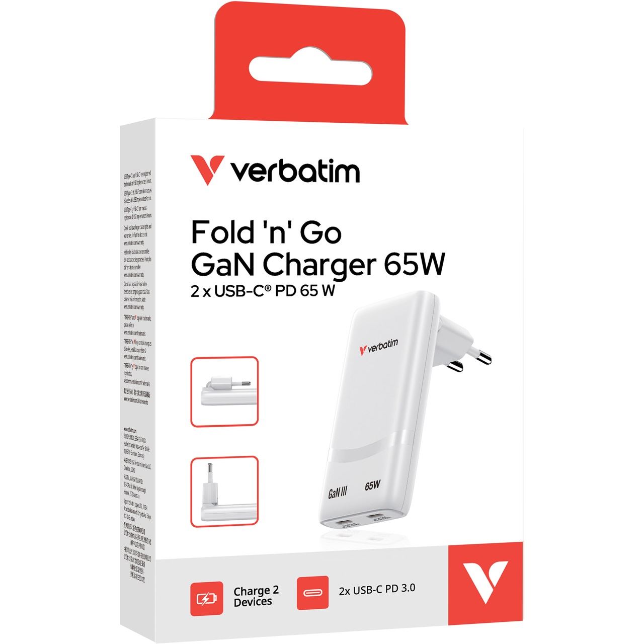 Verbatim Fold Go Charger 2 Port 65W USB-C white
