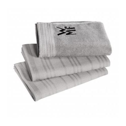 Das 3-teilige Handtuchset ProfiSelect zeichnet sich durch seine besondere Saugfähigkeit aus. Und besteht aus zwei Geschirrtüchern und einem Handtuch. Mit den zwei Geschirrtüchern trocknen Sie jegliches Geschirr fusselfrei, das flauschige Handtuch mit eingesticktem WMF Logo fühlt sich besonders weich an. Der edle Grauton fügt sich in jede Küche ein und verleiht einen vornehmen Touch.