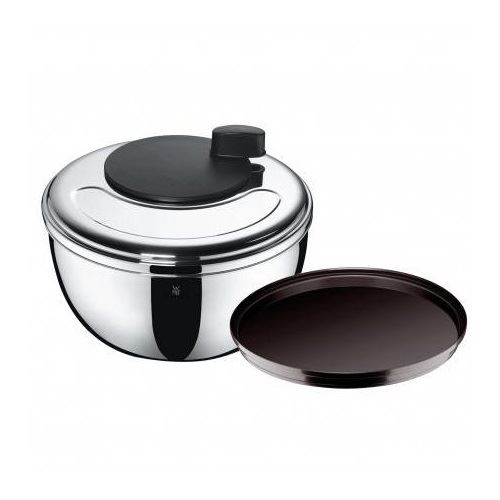 In den Salatschleudern von WMF waschen und trocknen Sie sowohl Salat als auch frische Kohl- und Spinatblätter im Handumdrehen. So geht's: Spülen Sie Ihren Salat im Kunststoffsieb zunächst gründlich ab, setzen Sie anschließend das Sieb in die Schüssel, verschließen Sie diese mit dem Deckel und schleudern Sie munter drauflos. Durch das Trocknen nehmen die Salatblätter das Dressing besser an, es verwässert nicht. Eine Salatschleuder ist ein praktischer Küchenhelfer, den WMF in verschiedenen Designs anbietet.