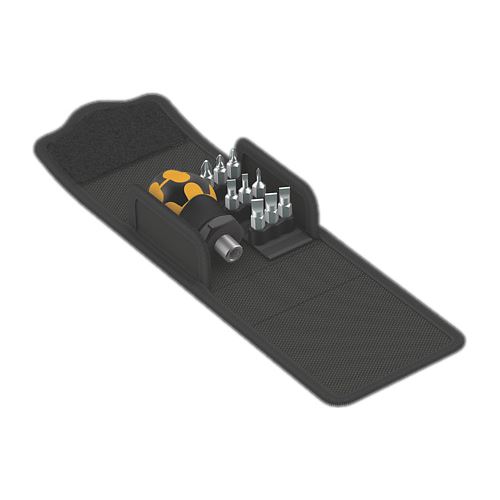 Griff /Wechselklingen-System für blitzschnellen Austausch der benötigten Klinge. Besonders kleiner ESD Bits-Handhalter mit kurzer Klinge für elektrostatisch sicheres Arbeiten auch in schwer zugänglichen Bereichen. Geeignet für die Aufnahme von Bits mit 1/4“-Außensechskantantrieb nach DIN ISO 1173-C 6,3 und Wera Anschluss-Reihe 1. Mit starkem Dauermagnet, der auch große und schwere Schrauben hält. Der 2-komponentige Kraftform Griff mit seiner praktischen Kombination aus Hart- und Weichzonen ermöglicht festes Zupacken und präzises Arbeiten. Hochwertige Bits für den universellen Einsatz. Kompakte, textile Box mit hoher Robustheit, geringem Gewicht und Volumen. Geeignet zum Andocken an das Wera 2go System.
