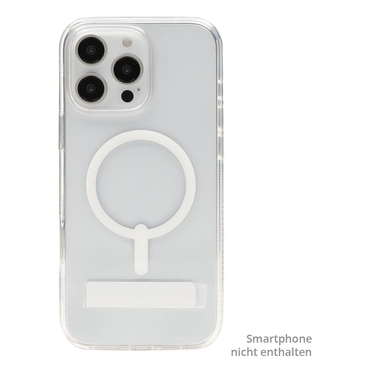 ZAGG Crystal Palace Snap w/Kickstand. Etui-Typ: Cover, Markenkompatibilität: Apple, Kompatibilität: iPhone 16 Pro Max, Maximale Bildschirmgröße: 17,5 cm (6.9"), Oberflächenfärbung: Einfarbig, Produktfarbe: Transparent, Desktop-Ständer