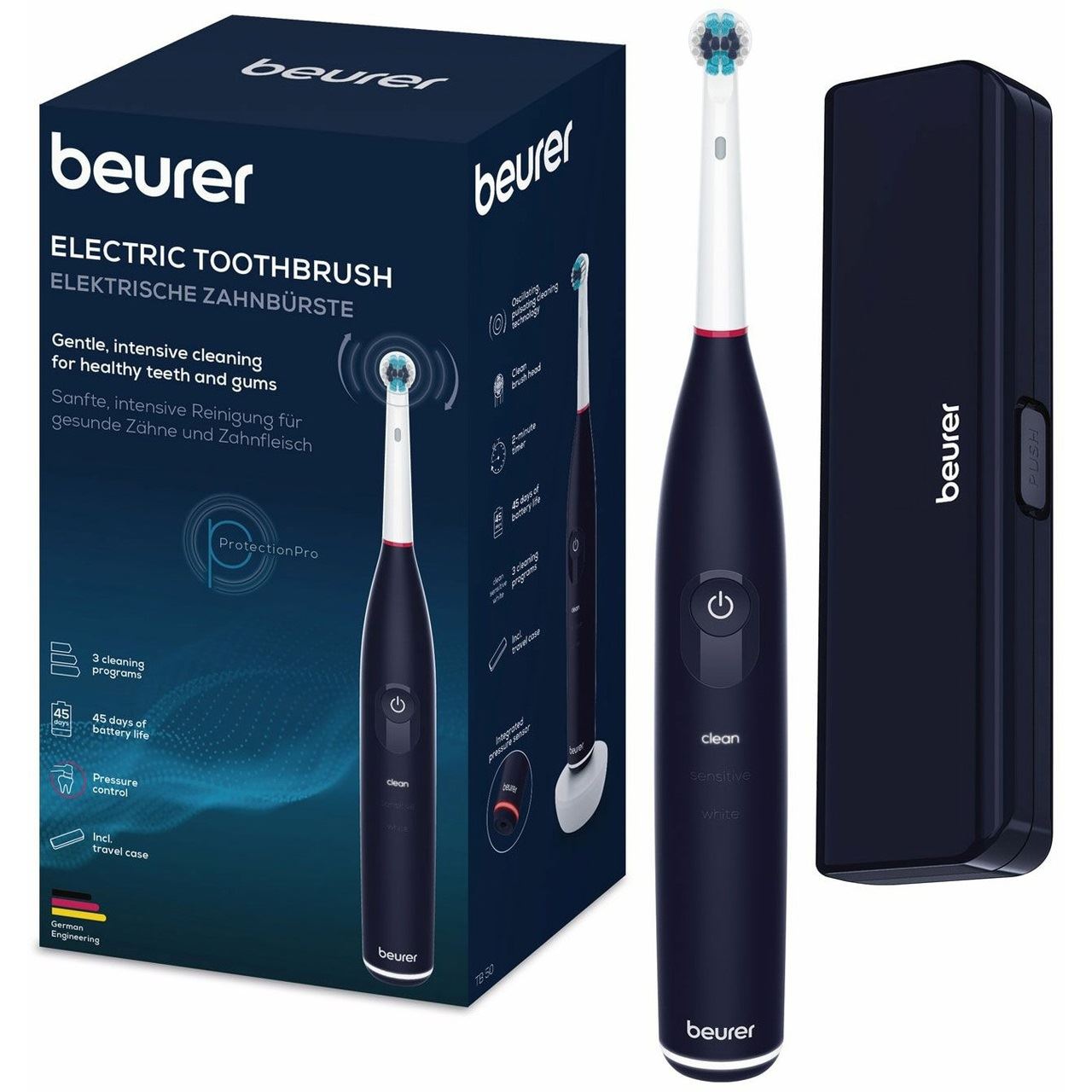 Beurer TB 50. Zweck: Erwachsener, Zahnbürstentyp: Vibrierende Zahnbürste, Zahnbürsten Modi: Normal, Sensibel, Whitening. Energiequelle: Akku, Akku-/Batterietyp: Integrierte Batterie, Akku-/Batteriespannung: 3,7 V. Anzahl enthaltener Griffe: 1 Stück(e), Anzahl enthaltener Bürstenköpfe: 2 Stück(e)