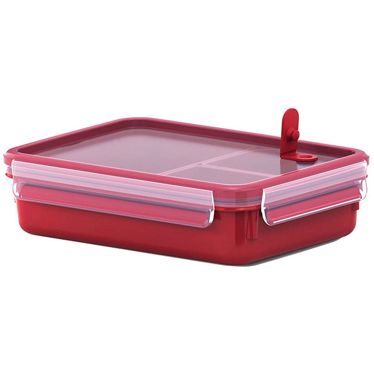 EMSA 517775 CLIP & MICRO Mikrowellendose mit 3 Einsätzen. Fassungsvermögen: 1,2 l, Produktfarbe: Rot, Transparent, Material: Polypropylen (PP), Thermoplastisches Elastomer (TPE). Breite: 163 mm, Tiefe: 225 mm, Höhe: 58 mm. Menge pro Packung: 1 Stück(e)