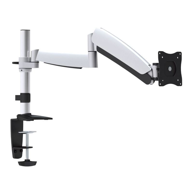 Die Halterung ist einfach zu installieren und wird an Ihrem Schreibtisch befestigt, wodurch wertvoller Arbeitsplatz gespart wird. Seine Gelenkarme bieten einen großen Bewegungsbereich, sodass Sie Ihren Monitor in der perfekten Höhe und im perfekten Winkel für Ihre Bedürfnisse positionieren können. Die Gasfederstruktur sorgt für ein höheres Maß an Flexibilität und Präzision bei der Überwachung der Positionierung und erhöht so den Komfort und die Produktivität. Mit ihrer langlebigen Konstruktion und dem schlanken Design ist diese Halterung eine ausgezeichnete Wahl für die Schaffung eines ergonomischeren und organisierteren Arbeitsplatzes.