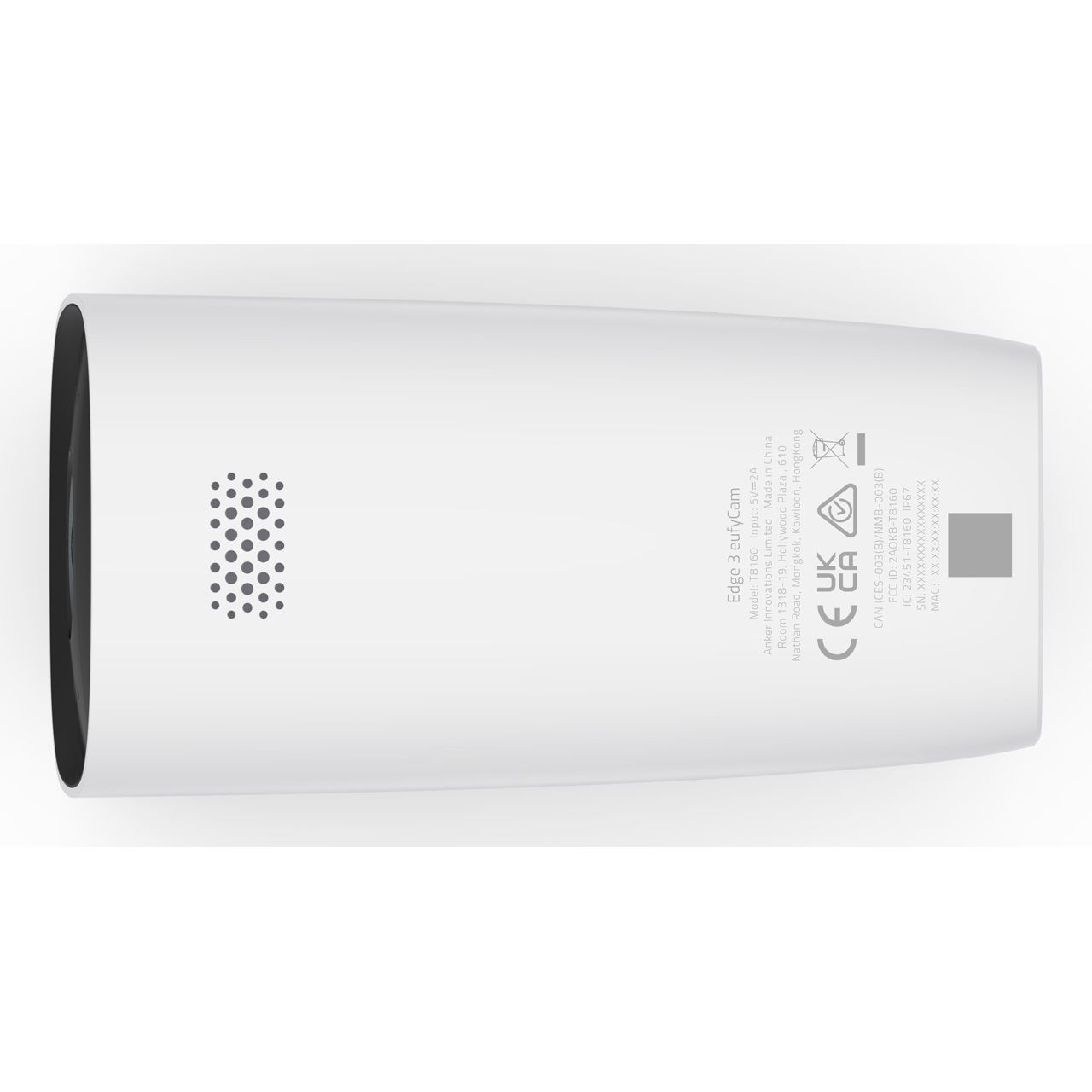 Eufy T88713W1. Typ: IP-Sicherheitskamera, Unterstützte Positionierung: Draußen, Übertragungstechnik: Kabellos. Befestigungstyp: Wand, Produktfarbe: Schwarz, Weiß, Formfaktor: Box. Blickwinkel (FOV): 135°. Nachtsichtdistanz: 7.5 m. Maximale Auflösung: 3840 x 2160 Pixel, Bis zu 30 Frames pro Sekunde: 15 fps
