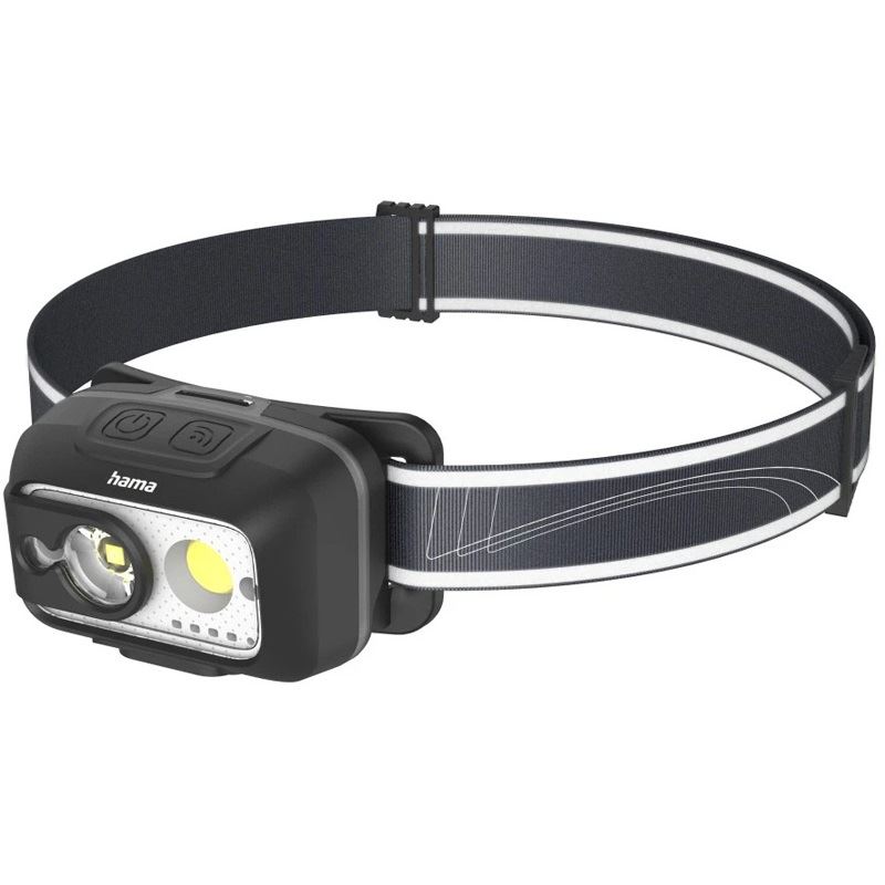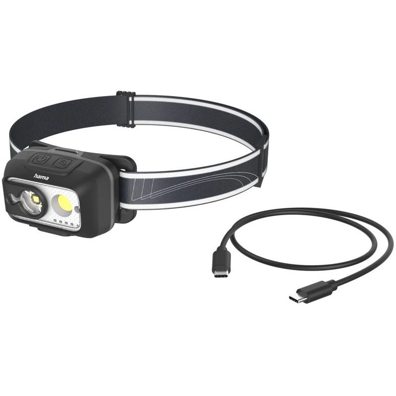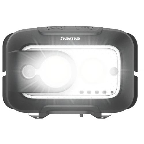 Hama HL500-C. Taschenlampen Typ: Stirnband-Taschenlampe, Produktfarbe: Schwarz, Grau, Gehäusematerial: Kunststoff. Internationale Schutzart (IP-Code): IP44. Lampentyp: LED, Anzahl Lampe(n): 2 Lampen, Lichtleistung (max.): 500 lm. Aufladequelle: USB, Akku-/Batterietechnologie: Lithium Polymer (LiPo), Akku-/Batteriespannung: 3,7 V. Breite: 77 mm, Tiefe: 46 mm, Höhe: 49 mm