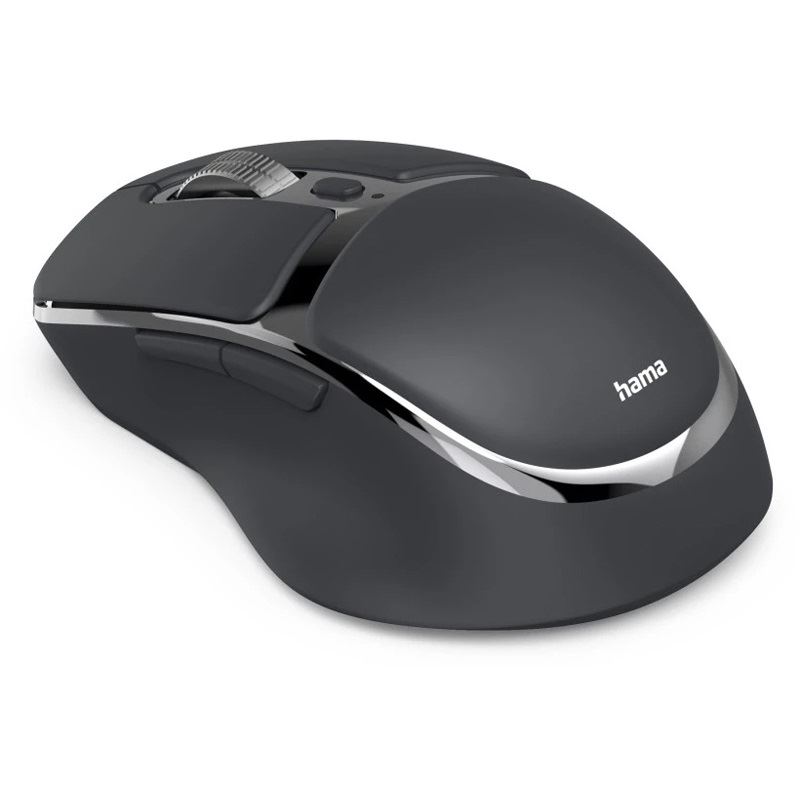 Hama WM-800. Formfaktor: rechts. Bewegungerfassungs Technologie: Optisch, Geräteschnittstelle: RF Wireless + Bluetooth, Bewegung Auflösung: 3200 DPI, Tastentyp: Gedrückte Tasten, Knopfanzahl: 8, Scroll Typ: Rad. Energiequelle: Batterien. arbeitet auf jeder Oberfläche. Produktfarbe: Anthrazit