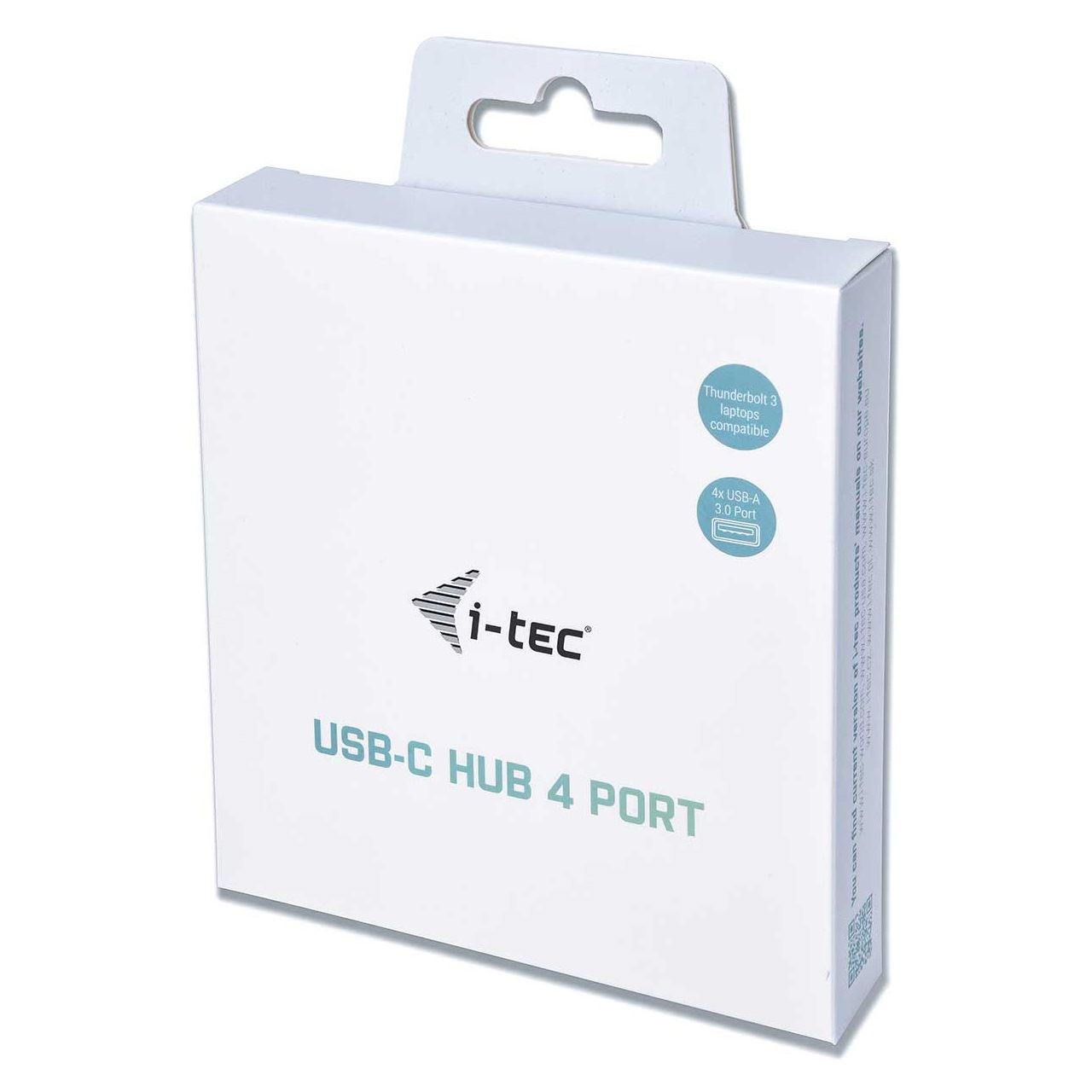 i-tec Metal USB-C HUB 4 Port. Hostschnittstelle: USB 3.2 Gen 1 (3.1 Gen 1) Type-C, Hub-Schnittstellen: USB 3.2 Gen 1 (3.1 Gen 1) Type-A. Datenübertragungsrate: 5000 Mbit/s, Produktfarbe: Grau. Unterstützung anderer Betriebsysteme: Android. Breite: 96 mm, Tiefe: 30 mm, Höhe: 21 mm. Verpackungsbreite: 145 mm, Verpackungstiefe: 130 mm, Verpackungshöhe: 25 mm