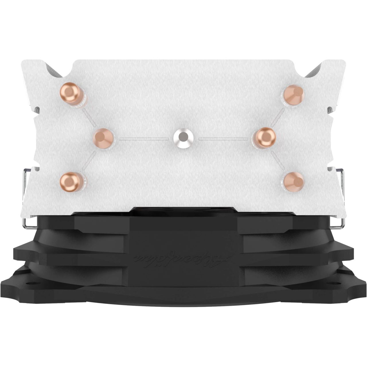 Die drei 6 mm starken Kupfer-Heatpipes werden direkt auf die CPU gepresst und nehmen die Hitze dadurch direkt vom Prozessor auf und leiten sie dann ohne Umwege an die unzähligen Aluminiumlamellen weiter. Dieses Verfahren sorgt für eine sehr gute Kühlung mit konventioneller Wärmeleitpaste.