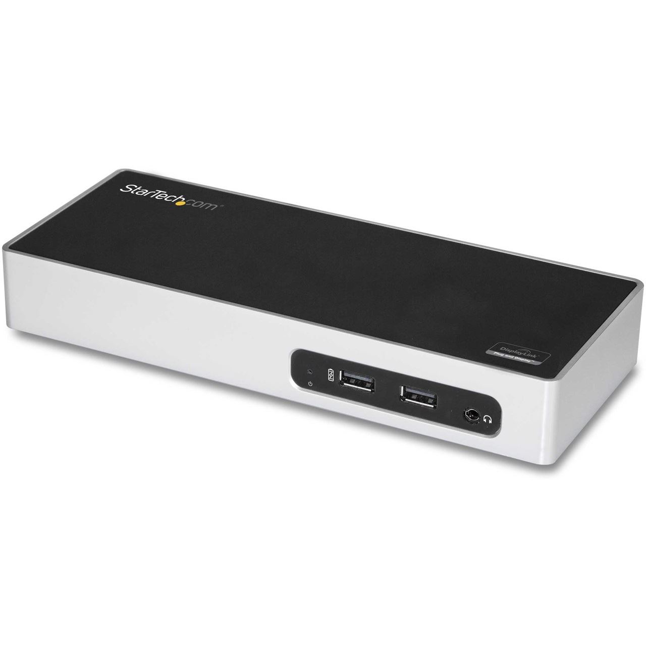 StarTech.com Dual Monitor USB 3.0 Docking Station - Notebook Dockingstation mit HDMI- und DVI/VGA Video - 6 Port USB 3.1 Gen 1 5Gbit/s Multimedia-Hub, GbE, Audio - USB-A - Windows und Mac. Übertragungstechnik: Kabelgebunden, Hostschnittstelle: USB 3.2 Gen 1 (3.1 Gen 1) Type-B, Kopfhörer-Anschluss: 3,5 mm. Ethernet LAN Datentransferraten: 10,100,1000 Mbit/s, Netzstandard: IEEE 802.3, IEEE 802.3ab, IEEE 802.3u. Produktfarbe: Schwarz, Silber, Datenübertragungsrate: 5 Gbit/s, Auflösung (maximal, digital): 2048 x 1152 Pixel. Energiequelle: AC, AC Eingangsspannung: 100 - 240 V, Eingangsstrom: 1 A. Unterstützt Windows-Betriebssysteme: Windows 10, Windows 10 Education, Windows 10 Education x64, Windows 10 Enterprise, Windows 10..., Unterstützt Mac-Betriebssysteme: Mac OS X 10.10 Yosemite, Mac OS X 10.11 El Capitan, Mac OS X 10.12 Sierra, Mac OS X 10.14 Mojave,...